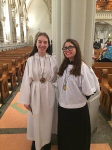 Three St. Mary’s students were presented with Altar Server of the Year honors for their work at the various parishes they serve throughout the area. Freshman Victoria Loniewski (left) serves at St. Mother Theresa of Calcutta Parish and junior Athena Mohamed (right) are pictured receiving their award, and sophomore Joe Kupczyk (not pictured) was also honored.