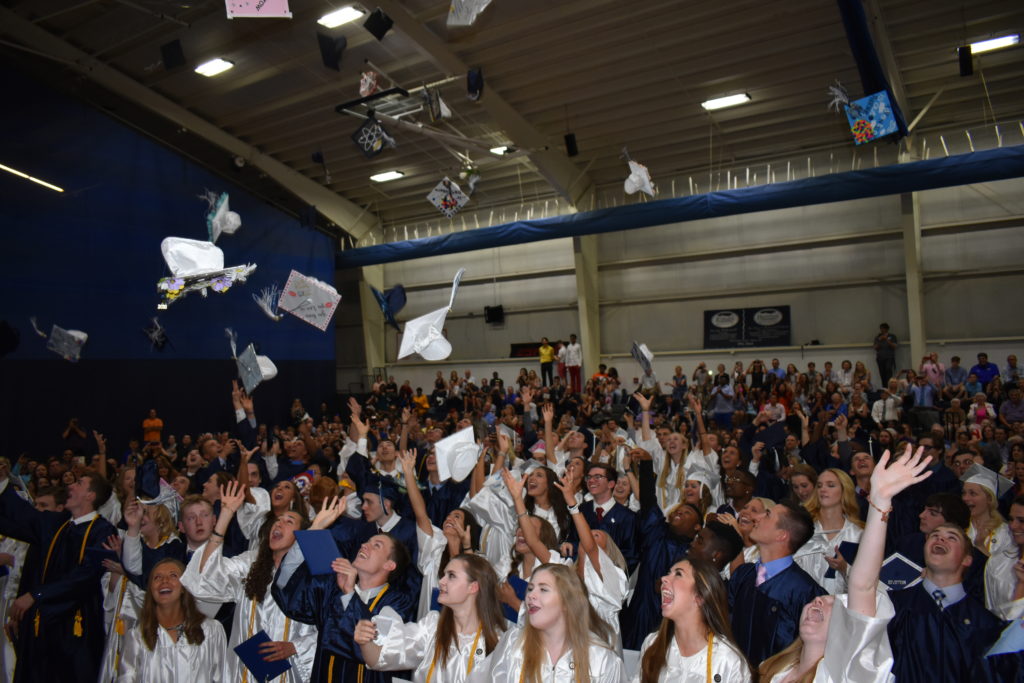 The names of the graduates were read, and students walked across the stage, accepting their diplomas from Mr. Junik, Board Chair, Mr. Fiume, and Head of School, Mr. Kelleher. The Class of 2018 moved their tassels, tossed their caps in the air, and entered the world as St. Mary’s alumni.