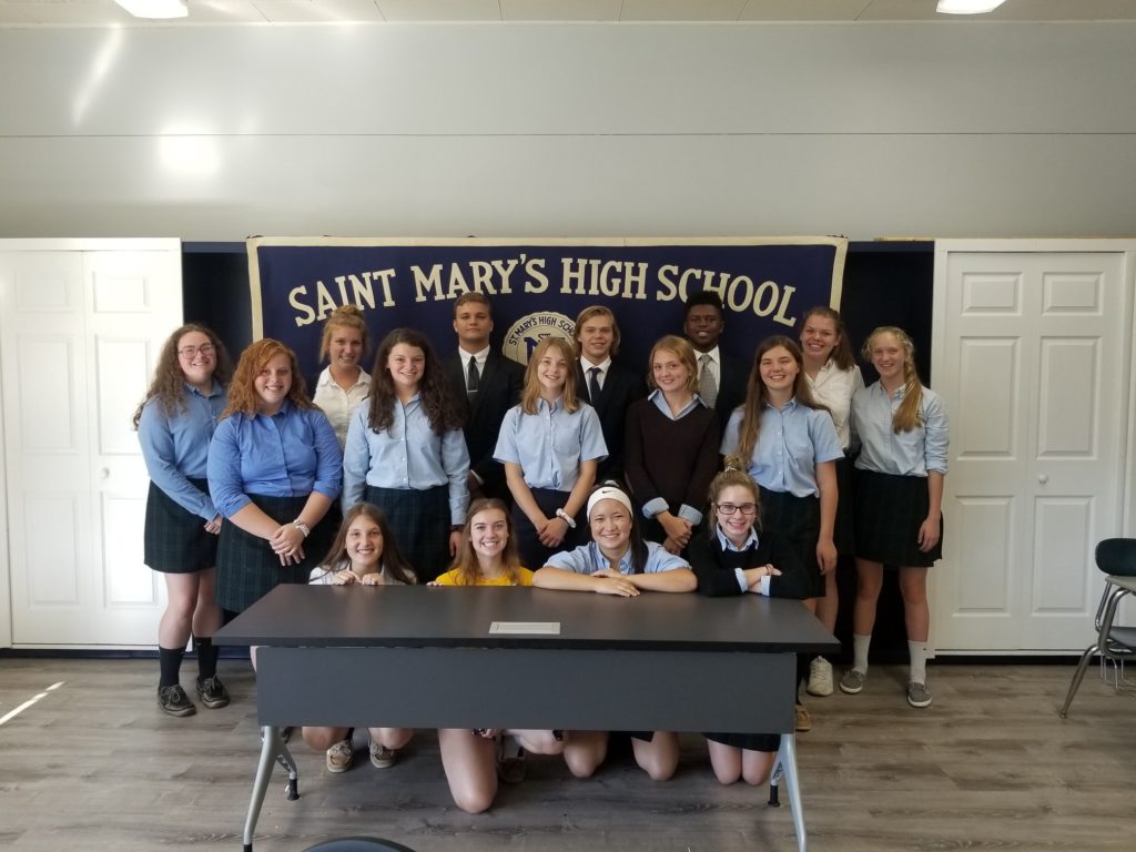 St. Mary’s celebrated our monthly liturgy a few weeks ago and had some very special guests join us! As part of the new Generation 2 Generation Club started by junior Lauren Nawojski and her mom, residents from Tennyson Court Senior Care Community came to St. Mary’s for Mass and to enjoy some cider and doughnuts with the students. Residents from Tennyson Court will be accompanied monthly by St. Mary’s students to do different activities to help bridge the gap between generations of the past and present!