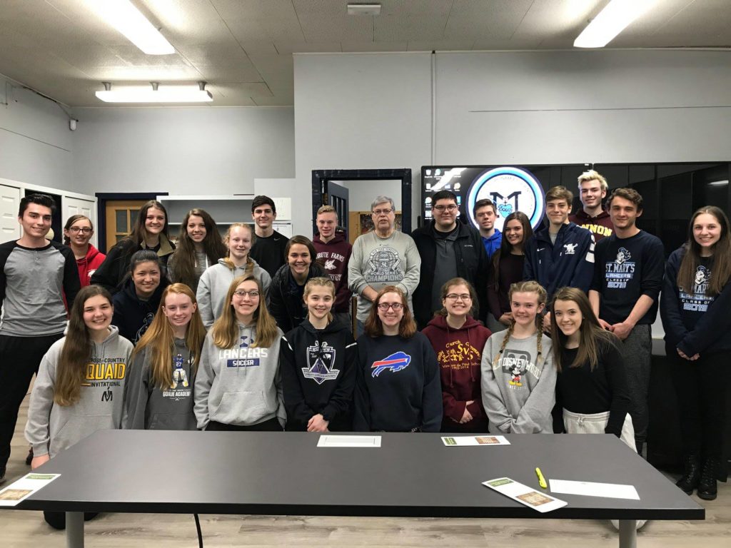 St. Mary’s National Honor Society participated in a Homeless Hangout, raising awareness and funds for those suffering from homelessness in the area. Students had to sleep inside the school with only limited access to food and just the clothes on their backs… and no cell phones… learning to experience just a fraction of what it means to be without. In total, our students raised nearly $500 for the Tri-Community Food Pantry in Lancaster.