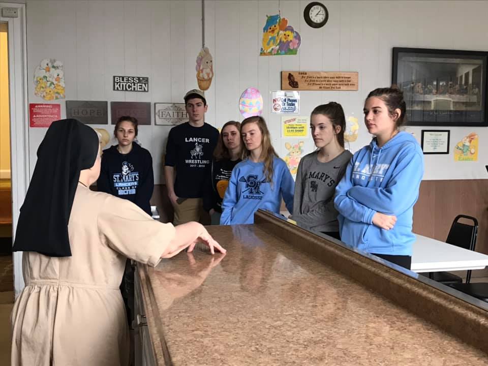 The Marian Chapter of the National Honor Society completed their year-long service project, which included organizing a school-wide clothing drive for the Response to Love Center. Members of NHS dropped off the clothes and spent the day volunteering in the center’s clothing storage room. Students were also fortunate enough to be taken on a tour of the center with Sr. Mary Johnice Rzadkiewicz CSSF, the head of the facility. The Response to Love Center focuses on the holistic treatment of poverty: loving care of the economically deprived, the spiritually poor, the emotionally battered, the isolated, the wounded and the broken.