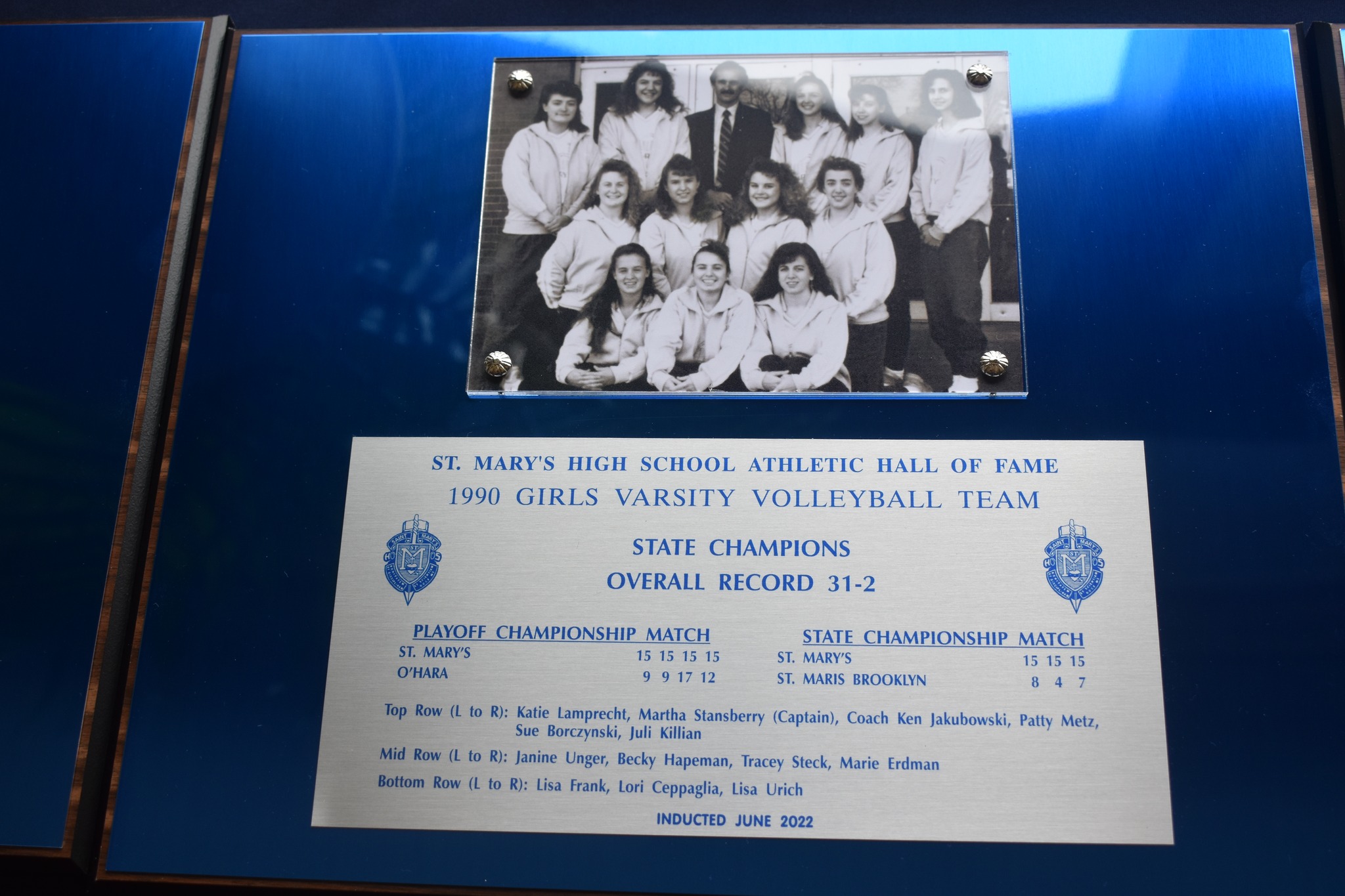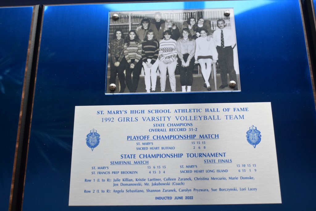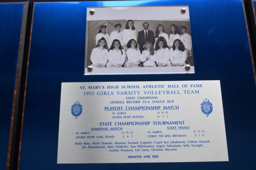 St. Mary’s Women’s Volleyball is as dominant a program as you’ll find across the country – league championship after league championship, 18 state titles and counting, and decades of dominance. The foundation of this success started in the ’80’s and continued for decades to come. We are pleased to welcome the women’s volleyball teams of 1989, 1990, 1992, 1993, and 1994 into the St. Mary’s Athletic Hall of Fame. All five of these teams were league and state champions – a precedent for teams of the future to follow.