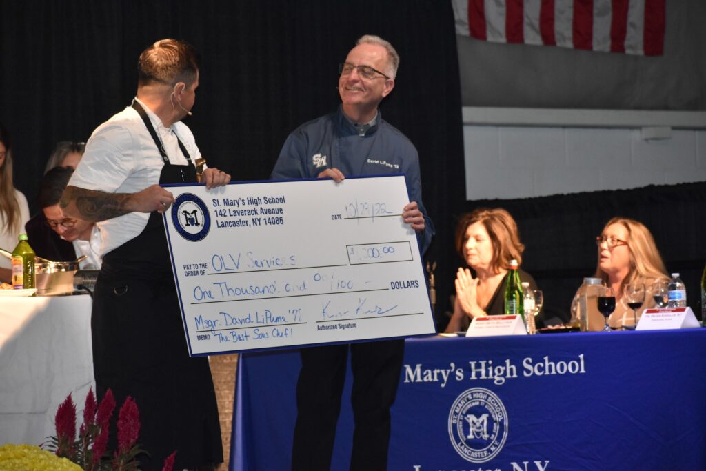 St. Mary’s High School also made $1,000 donations to OLV Charities and St. Mark School on behalf of our celebrity sous chefs and SMHS alumni, Msgr. David LiPuma ’87 and Fr. Joe Rogliano ’85 and the ministries they serve.