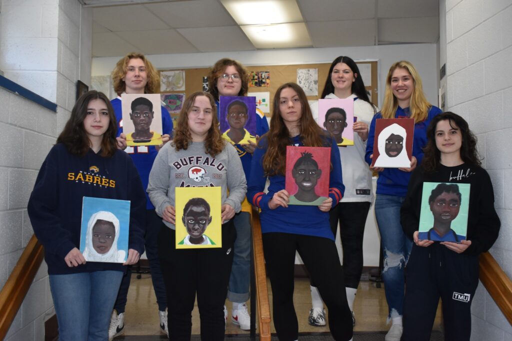 After applying to partake in The Memory Project, a school is then linked with a group of children facing some type of challenge in a different part of the world. St. Mary’s students painted portraits of children in Nigeria.