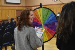Prior to the event, students chose the career they will most likely pursue and were then given an entry-level salary to go through the exercise with. Students challenged their assumed lifestyle against their career choice, making financial decisions like where to live, what kind of car to buy, choosing a health insurance plan, choosing cell phone plans and streaming platforms, spinning the “Whammy Wheel,” and much more.