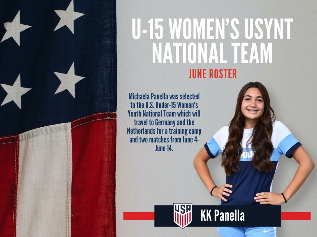 BIG NEWS ALERT! Freshman Michaela Panella has been selected by the U-15 US Youth National Team to travel overseas and earn her first National Team cap. She recently represented Team USA vs the Netherlands and Germany.