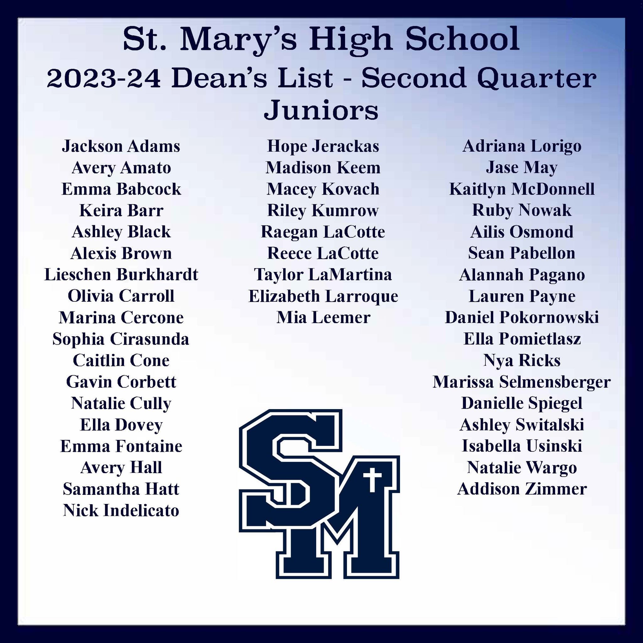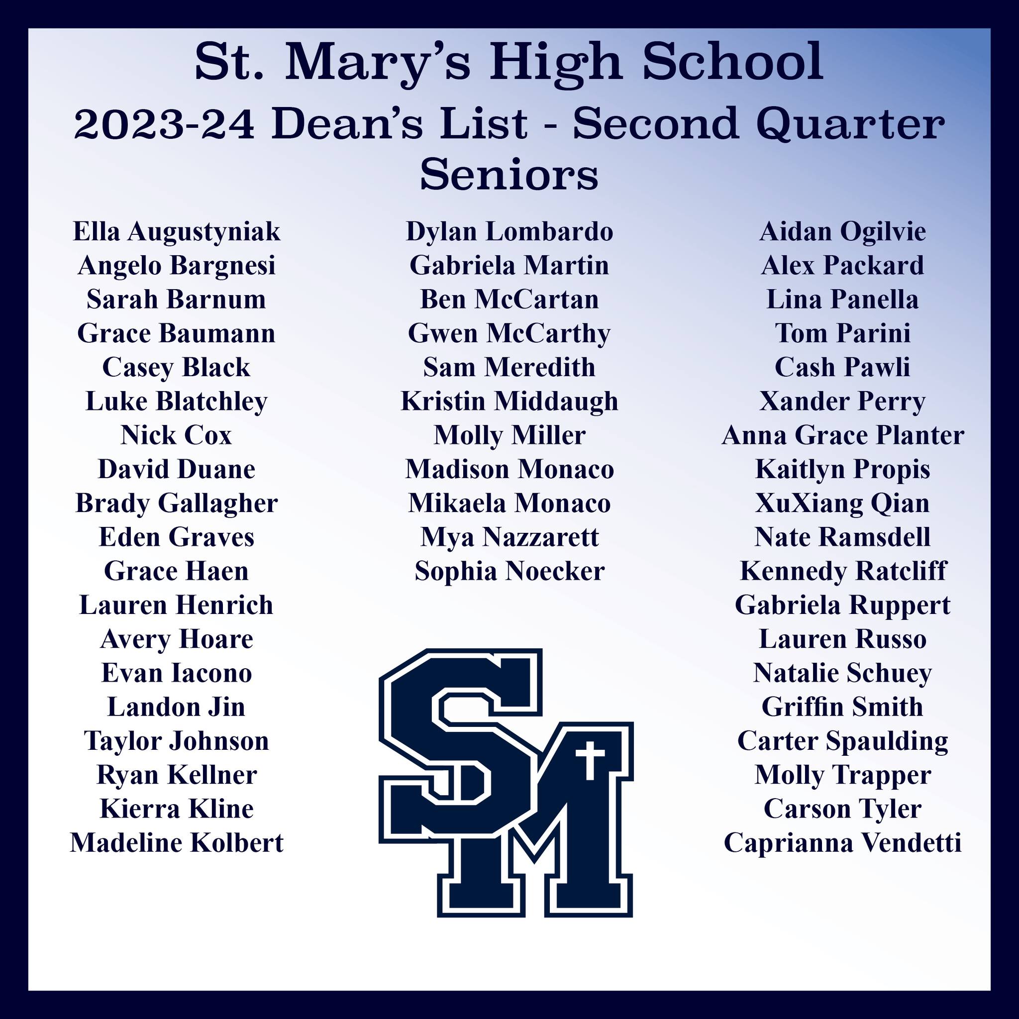 St. Mary’s Announces Second Quarter Dean’s List Posted March 25, 2024 by Amy Kawa & filed under Uncategorized.